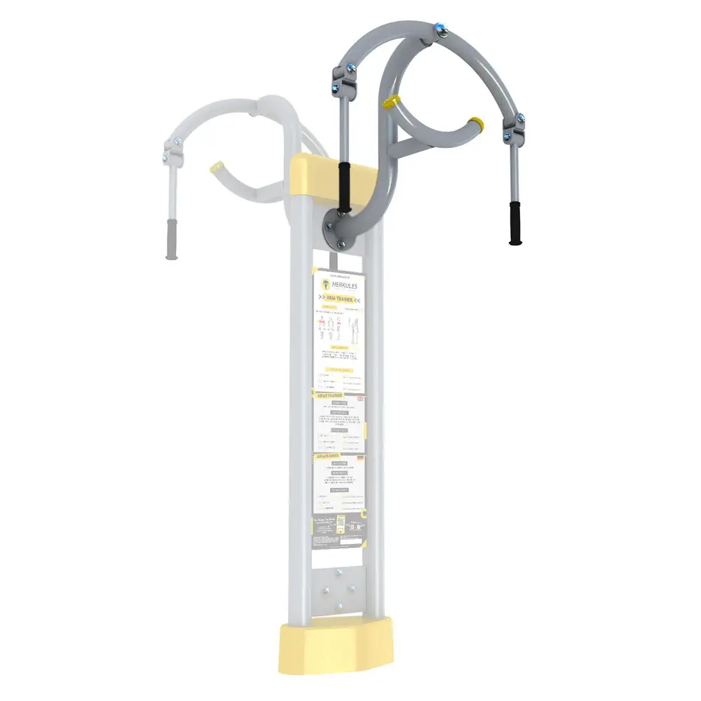 The Arm Trainer strengthens arms and shoulders outdoors, ideal for parks and fitness trails.