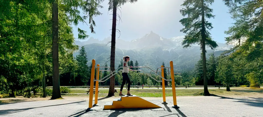 Pour tonifier le corps, misez sur des barres de traction, des stations de dips et des steppers extérieurs.
