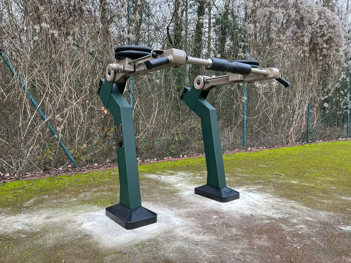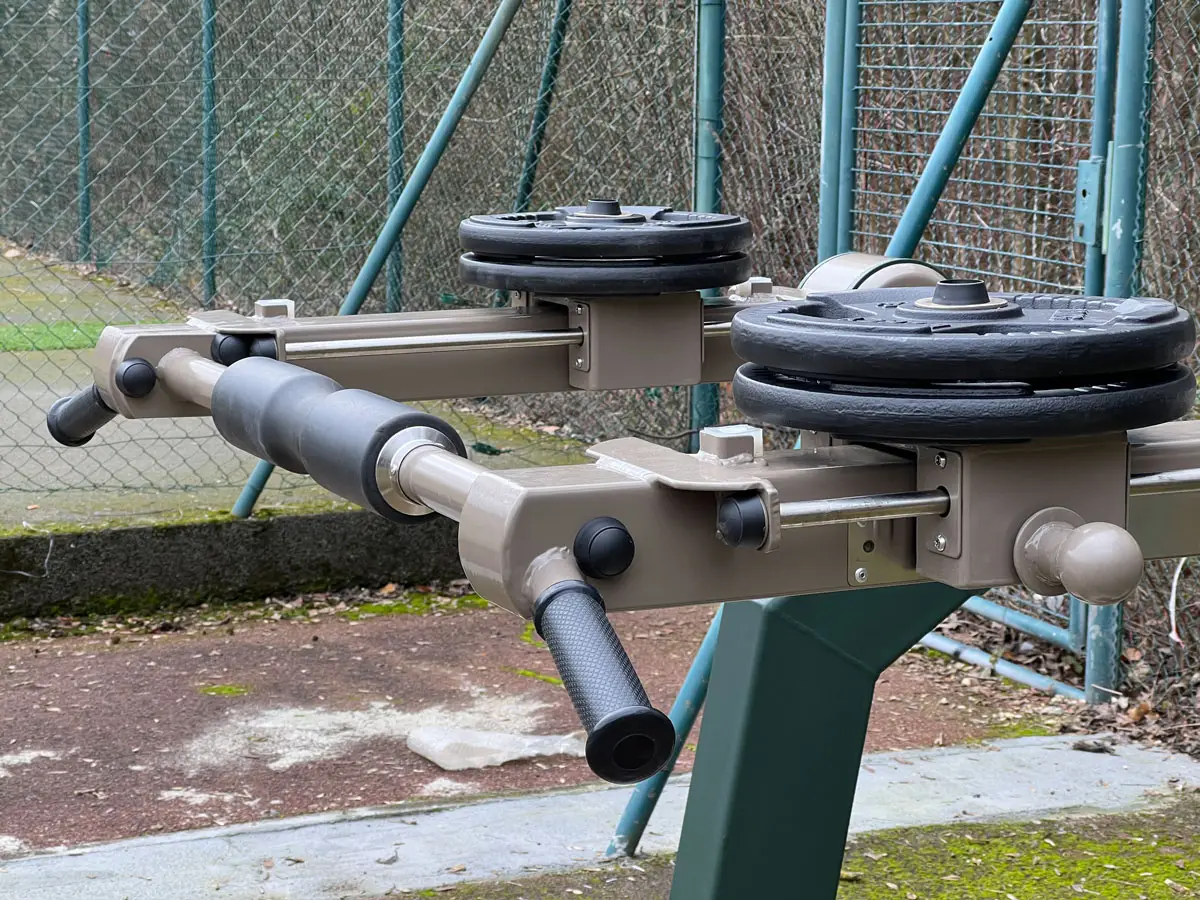 Parmi les équipements installés, on retrouve un Bench Press et un Squat de notre gamme Appareils de musculation à charge réglable. Grâce à leur système de charge ajustable, ces machines permettent aux pratiquants de travailler leur force de manière progressive et sécurisée, en s’adaptant aussi bien aux débutants qu’aux athlètes expérimentés. Associées aux stations de street workout, qui favorisent l’entraînement au poids du corps (tractions, dips, muscle-ups, etc.), ces installations offrent une expérience sportive complète, combinant musculation, agilité et endurance.
