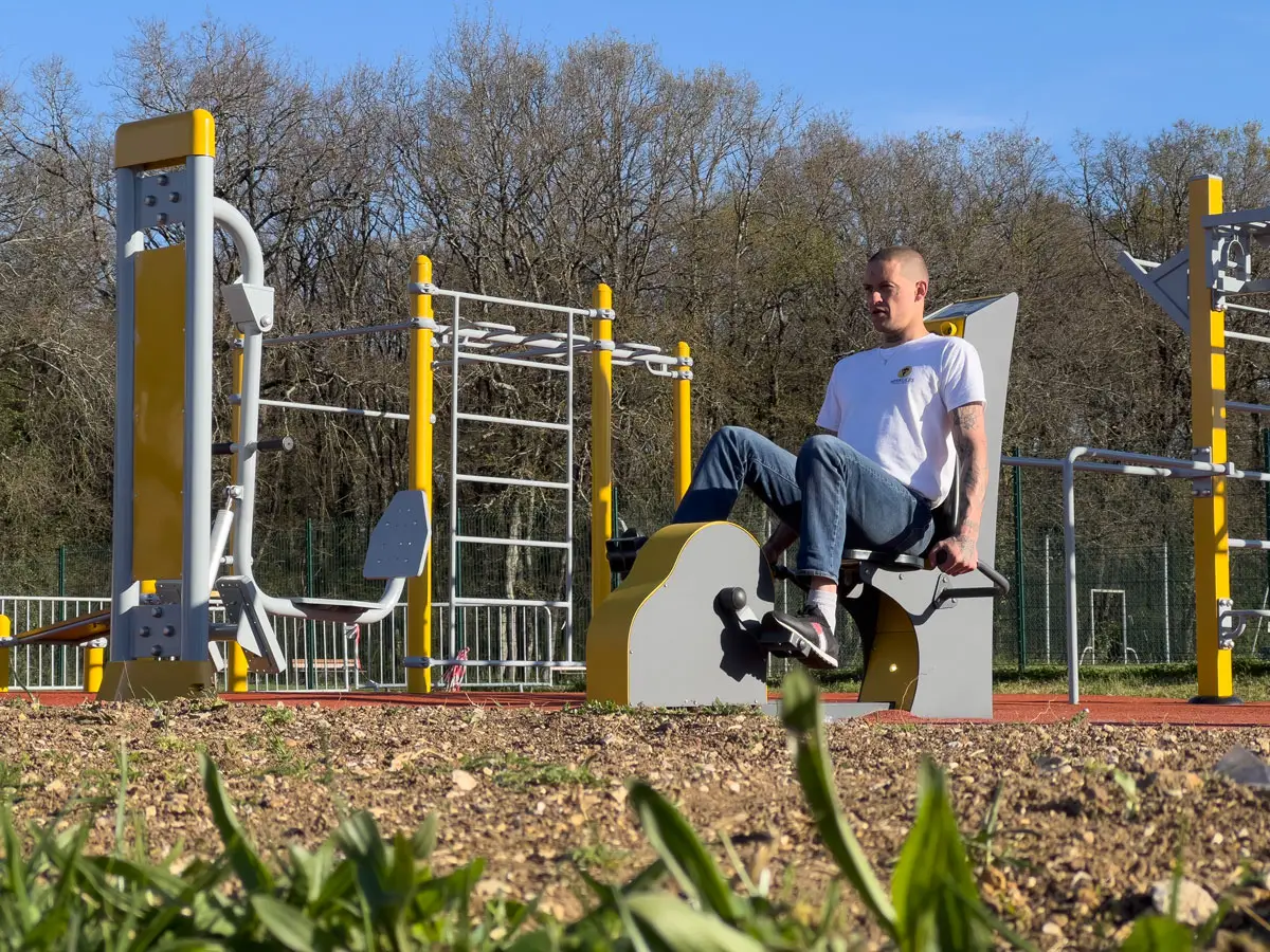 En complément, plusieurs appareils de fitness à recharge USB ont été installés, combinant effort physique et production d’énergie verte. Parmi eux, on retrouve un Vélo Elliptique USB et un Vélo USB, qui permettent de transformer l’énergie de l’utilisateur en électricité pour recharger smartphones et tablettes via USB ou induction. Ces équipements offrent une approche innovante du fitness extérieur, mêlant sport et technologie pour une expérience interactive et motivante.