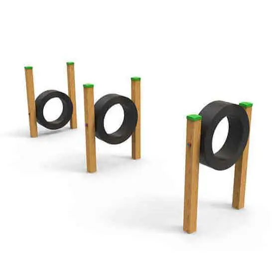 Triple Cerceau, obstacle à trois hauteurs, développe précision et confiance. Idéal tous niveaux, robuste et sécurisé.