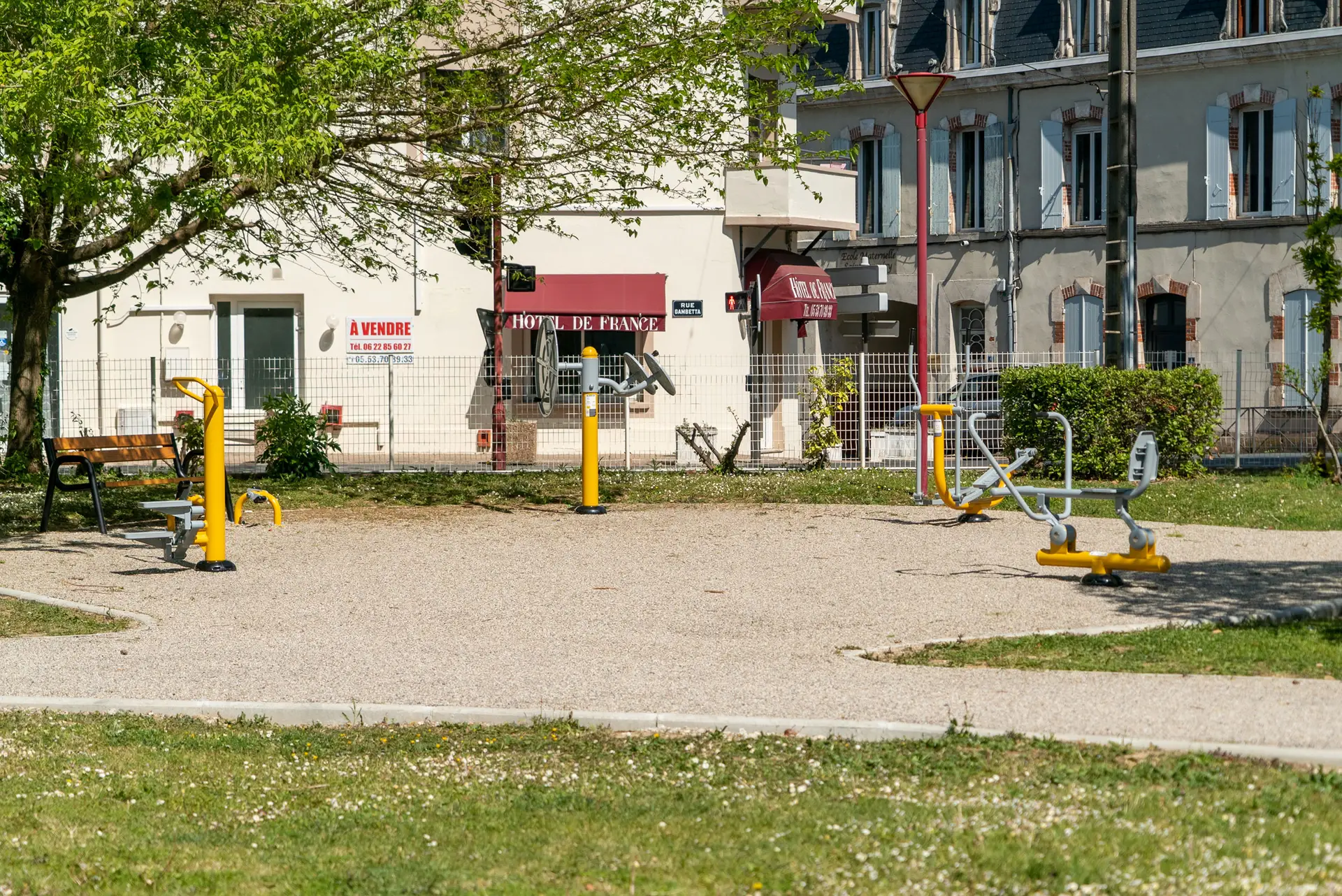 Un aménagement cohérent avec le paysage et la vie locale L’intégration esthétique a été pensée avec soin : couleurs, formes et positionnement respectent le cadre naturel du parc. L’ensemble crée une ambiance douce et accueillante, qui s’inscrit dans une démarche de valorisation du patrimoine végétal et du cadre de vie. Cet espace de fitness en plein air contribue à encourager des modes de vie plus actifs, plus sains et plus connectés à l’environnement. Il incarne la volonté de la ville de promouvoir le bien-être de ses habitants, en proposant un équipement gratuit, accessible et durable.